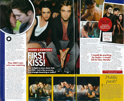 OK! Australia reports on the now infamous 'Kings of Leon' concert 'Kiss' - how Rob & Kristen are now openly dating each other, and how Taylor is jealous of their relationship due to his own feelings for Kristen he developed whilst filming New Moon.